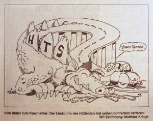 Rückblickend bleibt die 1998 in der Westfalenpost erschienene Karikatur „Vom Untier zum Kuscheltier“ von Matthias Kringe auch heute aktuell.4) Die Frage, ob „der Lindwurm des Hüttentals“ jedoch wirklich seinen Schrecken verloren hat, müssen die Siegerländerinnen und Siegerländer für sich selbst beantworten.