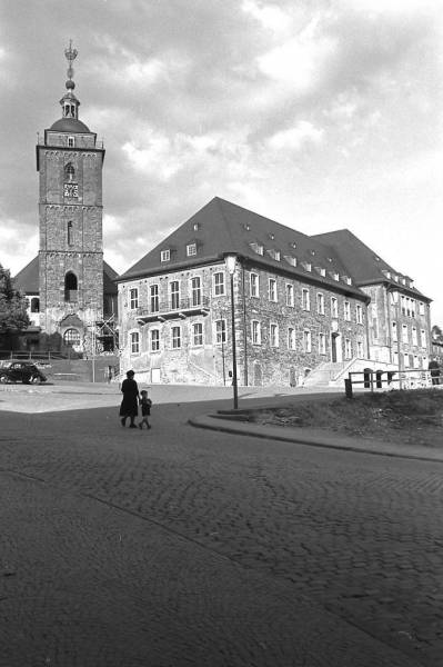 Direkt unterhalb der Nikolaikirche befinden sich Rathaus und markt. Die Ursprünge des Rathauses gehen auf ein mittelalterliches Kaufhaus zurück, wo Bäcker und Metzger ihre Produkte anpriesen und Händler Dinge des täglichen Bedarfs verkauften. Die erste urkundliche Erwähnung des Kaufhauses datiert in das Jahr 1303. Das Gebäude diente jedoch nicht nur dem Handel, es wurde für die Sitzungen des Rates, als Gefängnis und Folterkammer genutzt. Auf dem Dachboden lagerte man das Korn, im Keller befand sich die Rüstkammer. Außerdem stand ein Festsaal der wohlhabenden Bevölkerung für Feierlichkeiten zur Verfügung. Ende des 18. Jahrhunderts war das mehrfach veränderte Gebäude baufällig geworden. Die Stadt entschied sich für einen Neubau, der zwischen 1782 und 1788 realisiert wurde. Wachsende Einwohnerzahlen und veränderte Verwaltungsstrukturen machten in der Folgezeit immer wieder Veränderungen notwendig, auch um dem steigenden Raumbedarf gerecht zu werden. Nach den Zerstörungen des 2. Weltkrieges entschied sich die Stadtverwaltung für einen Neubau nach den Plänen der Architekten Meckel und Köhne, die sich an der alten Bauform orientierten. Neben dem Rathaus am Markt im Zentrum der alten Kernstadt Siegen nutzt die Stadtverwaltung heute weitere Standorte in Weidenau und Geisweid.